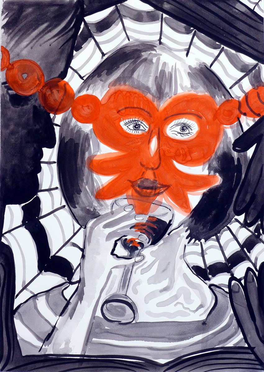 Raito, Mirka Mun teokset on usein muistiinpanoja jutuista, jotka jää härnäämään muo. Niinkuin flirtti tai nolotus tai hämärä aavistus. Kerran yks kaveri otti bileissä mun kameralla salaa valokuvan ihailemastaan naisesta. Se oli hieno valokuva, ja tein musteella ja huopakynillä muotokuvan sen valokuvan pohjalta. Annoin muotokuvan tälle kaverille synttärilahjaksi. Kaveri oli kai jotenkin vähän nolona, vaikka on muuten tosi cool. Kai se on piilottanut sen kuvan jonnekin, ehkä pöytälaatikkoon. Myöhemmin kuvan naisesta syntyi mun pöytälaatikkoon uudet sanat "Porque te vas" kappaleen melodiaan. Sanat menee näin: "Tumma kihara hiuksi pöydällä, keittiössä. Ja aurinko sun katseen viiltää, kääntää pois, et tunnusta. Koskaan en mä häntä tavannut, niin ihailtu. Vain poissaolonsa mä tunnen paremmin, en paljasta." Voit koettaa laulaa tän pätkän, jos tunnet melodian. No okei, muistaakseni mä oon yhen kerran kehdannut laulaa biisin näillä omilla sanoillani, sekin oli yksissä bileissä. Mut se nainen ei ollut siellä. Enkä ole kertonut sille kaverille. Nykyään sanoista assosioituu mulle oma mustasukkaisuuteeni sekä itselleni läheinen muisto talviauringon valosta meidän vanhassa keittiössä.