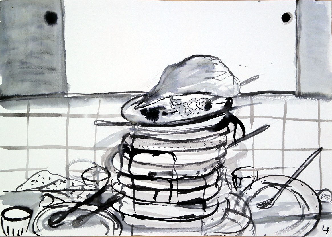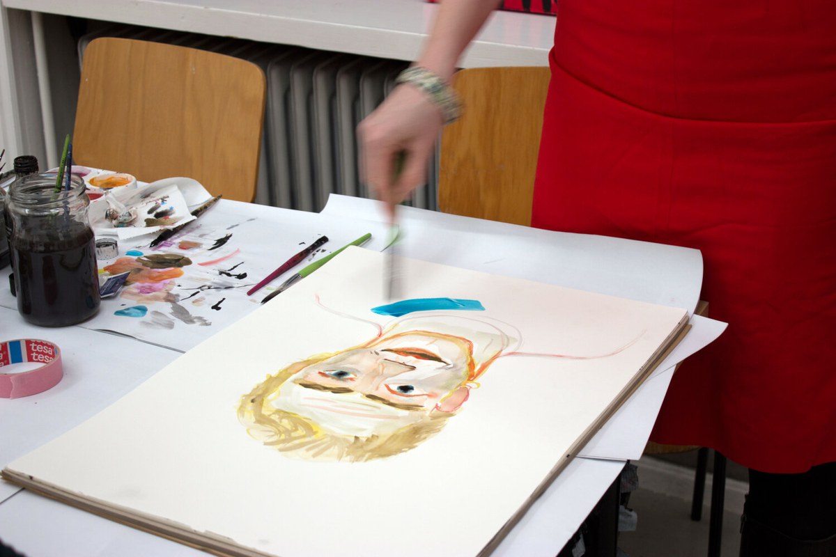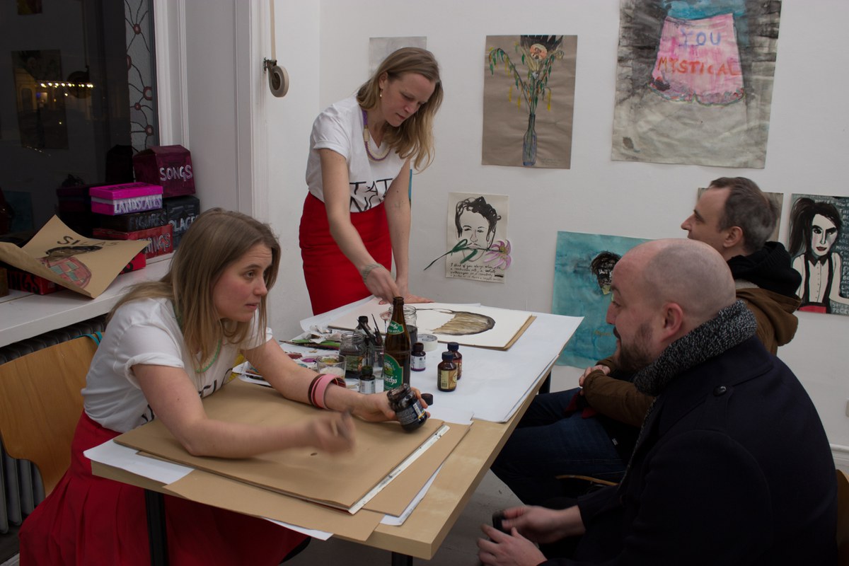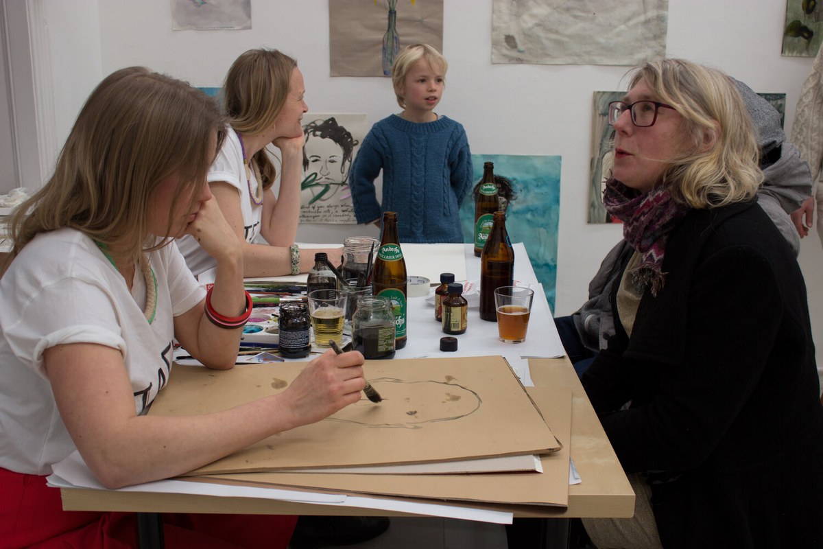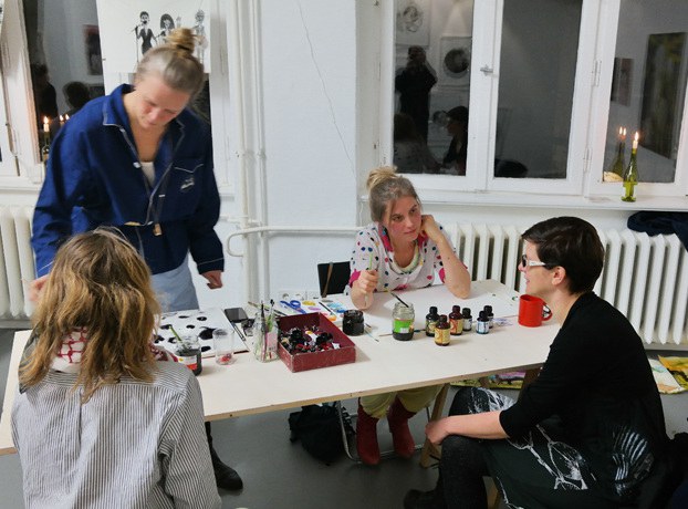 Station Nox paints live in dialogue. Station Nox paints things which are described by person who is participating the performance. Station Nox is one of the many collaborations between Niina Lehtonen Braun & Mirka Raito.