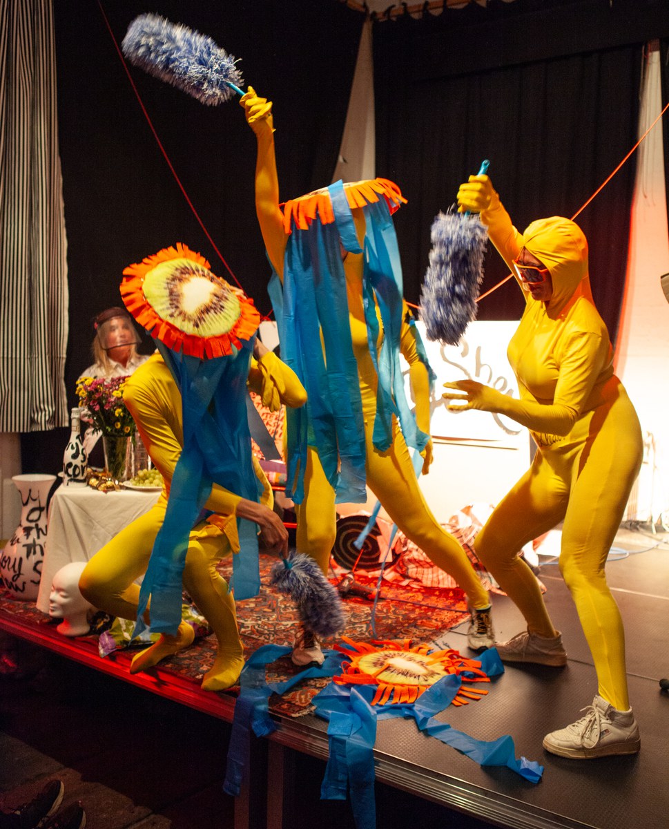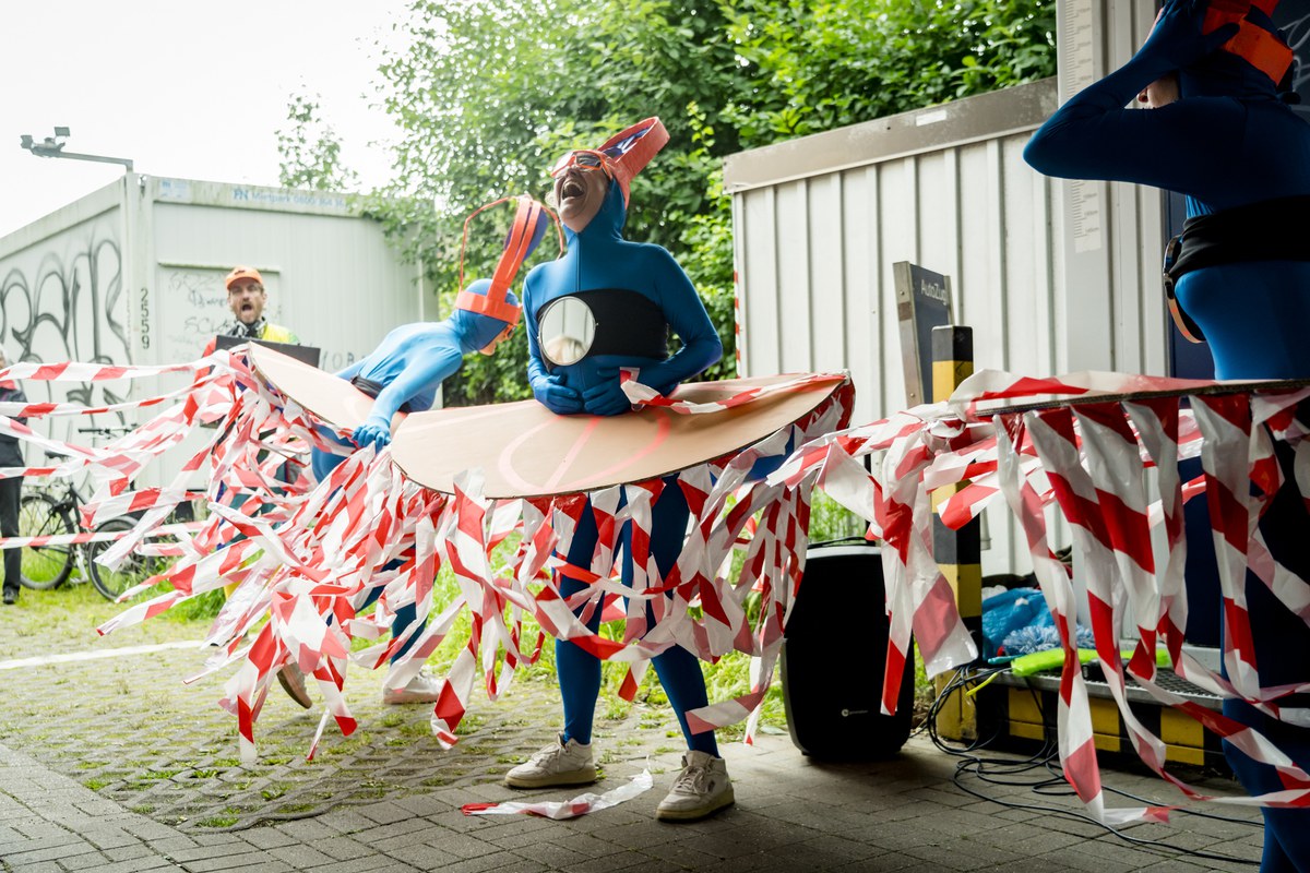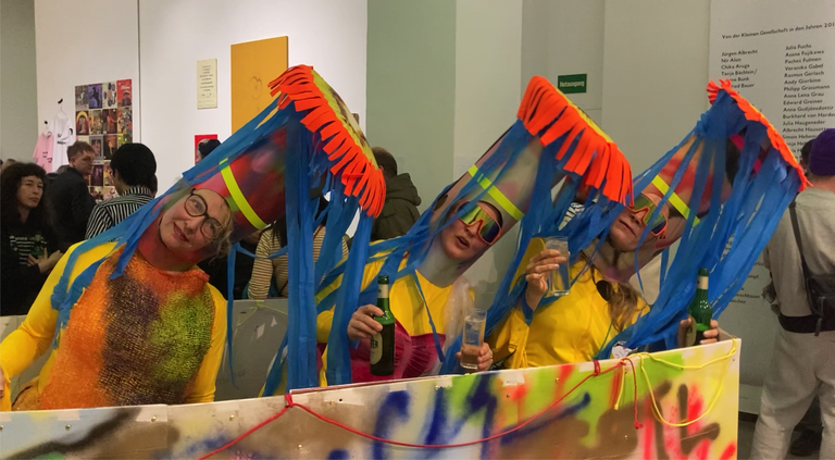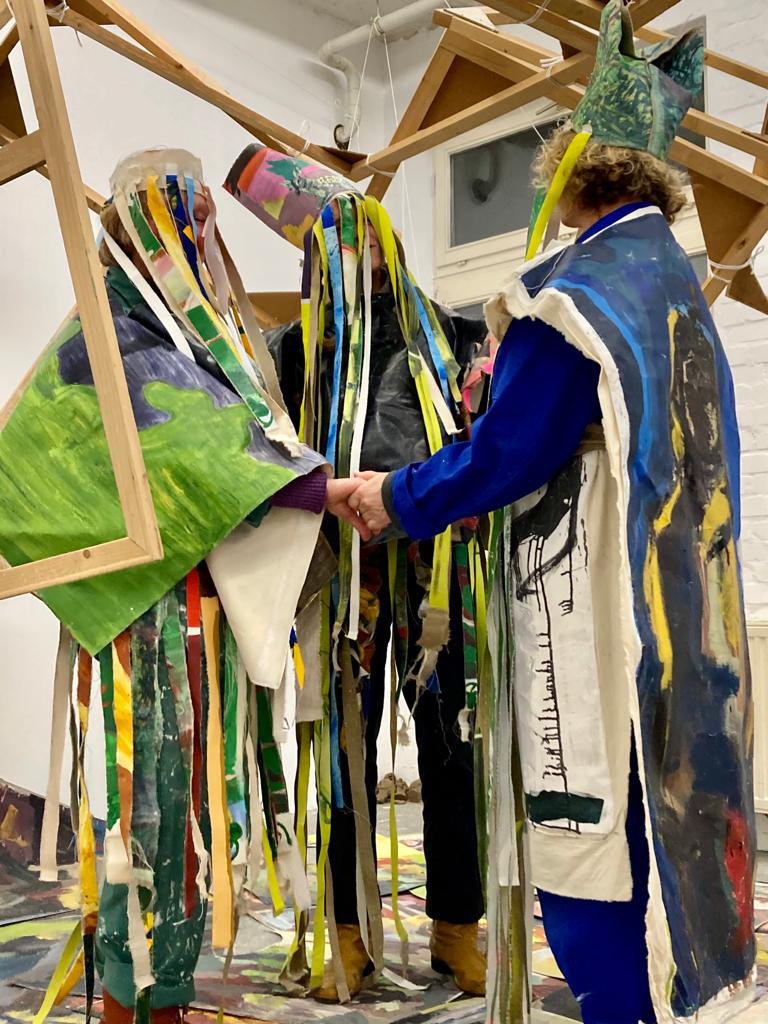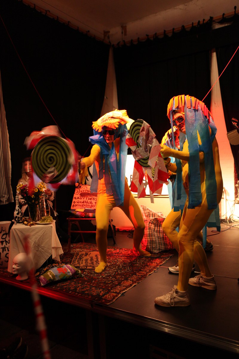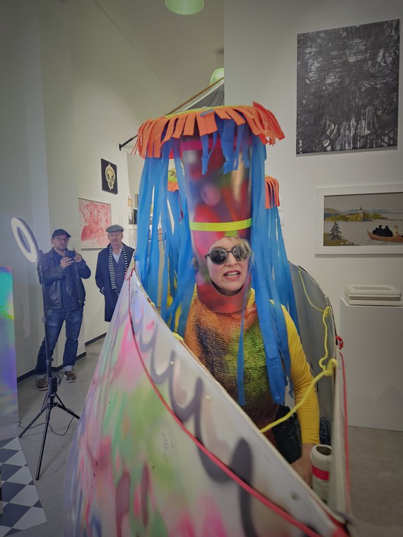 performance by Antoni Knigge, Charlotte Crome & Mirka Raito with their painted Arche Apocalyptikus