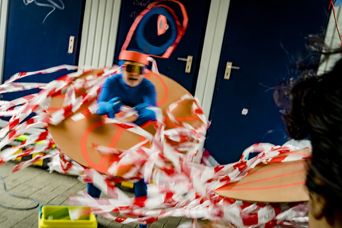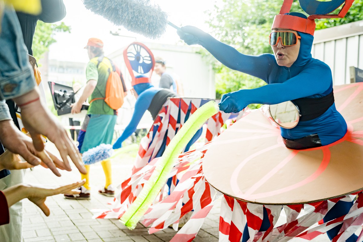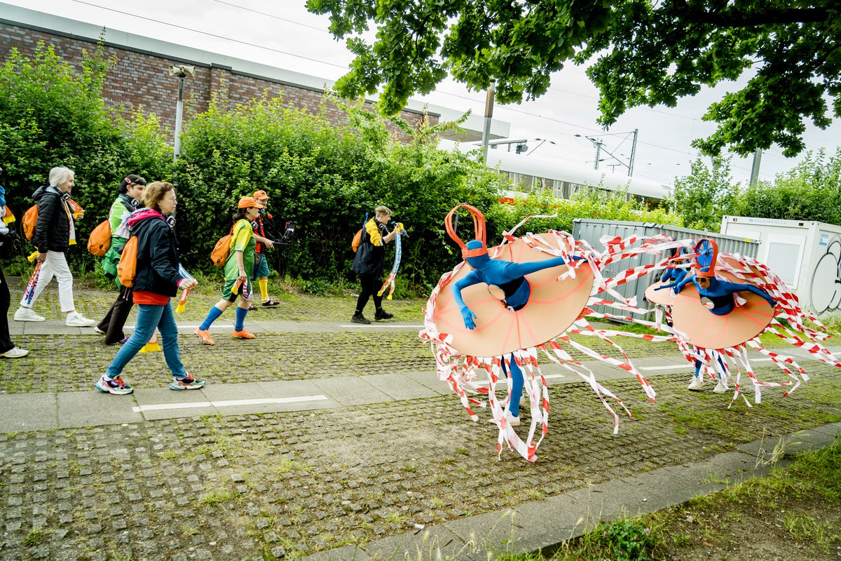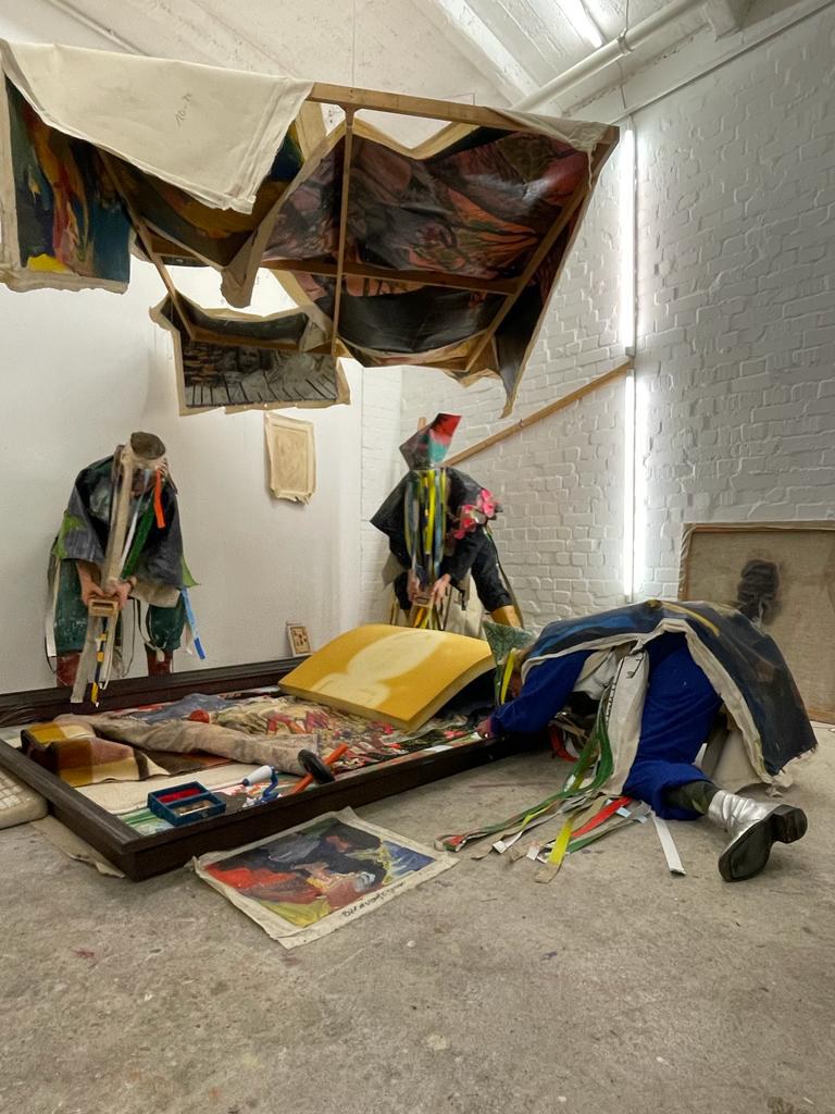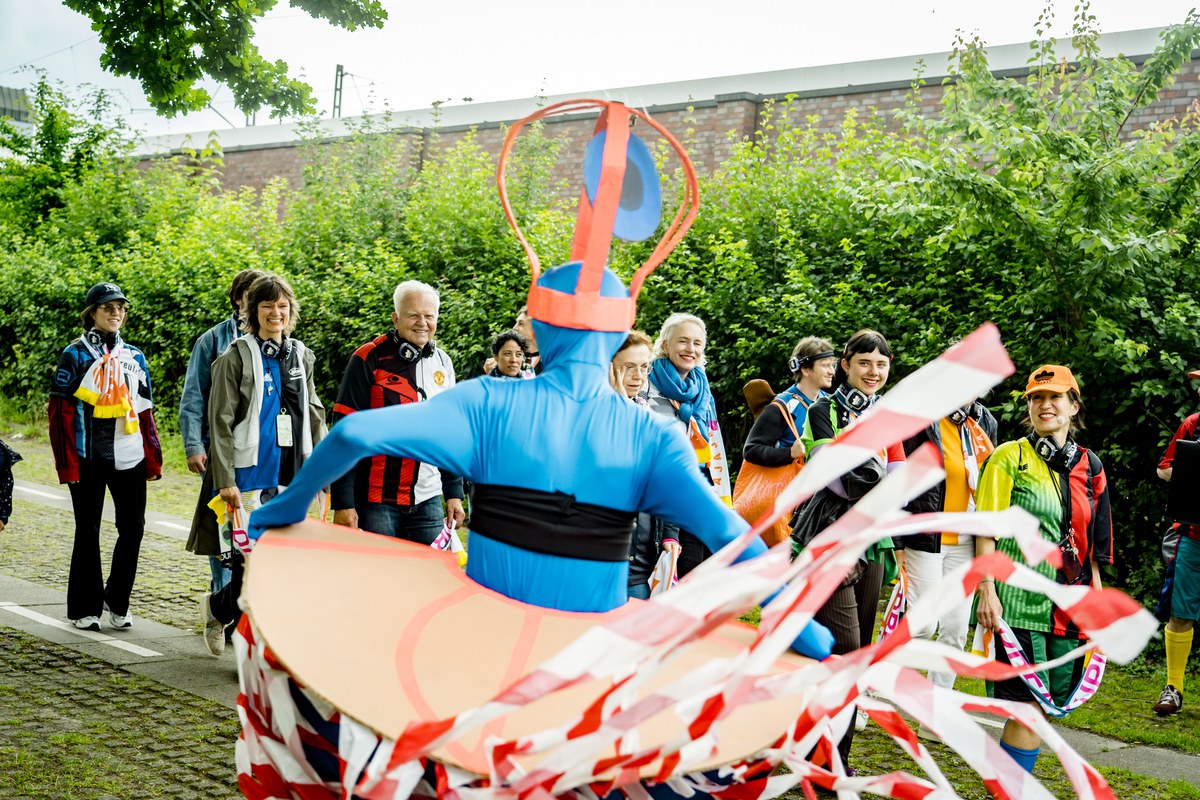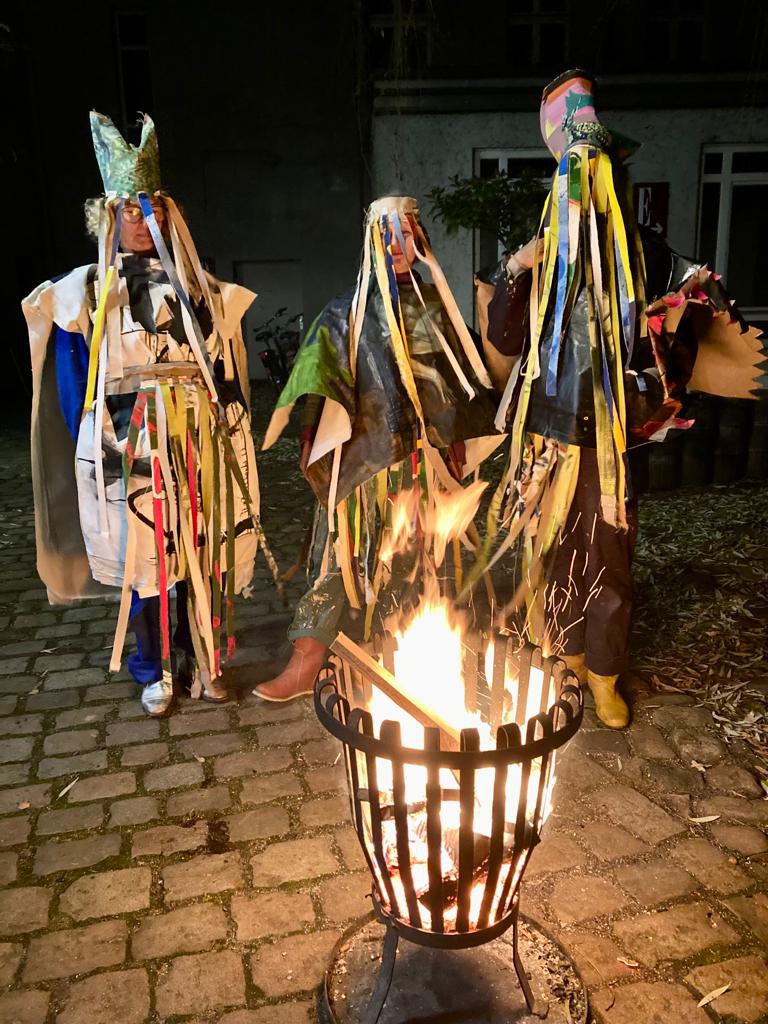 performance by Antoni Knigge, Charlotte Crome & Mirka Raito with their painted Arche Apocalyptikus