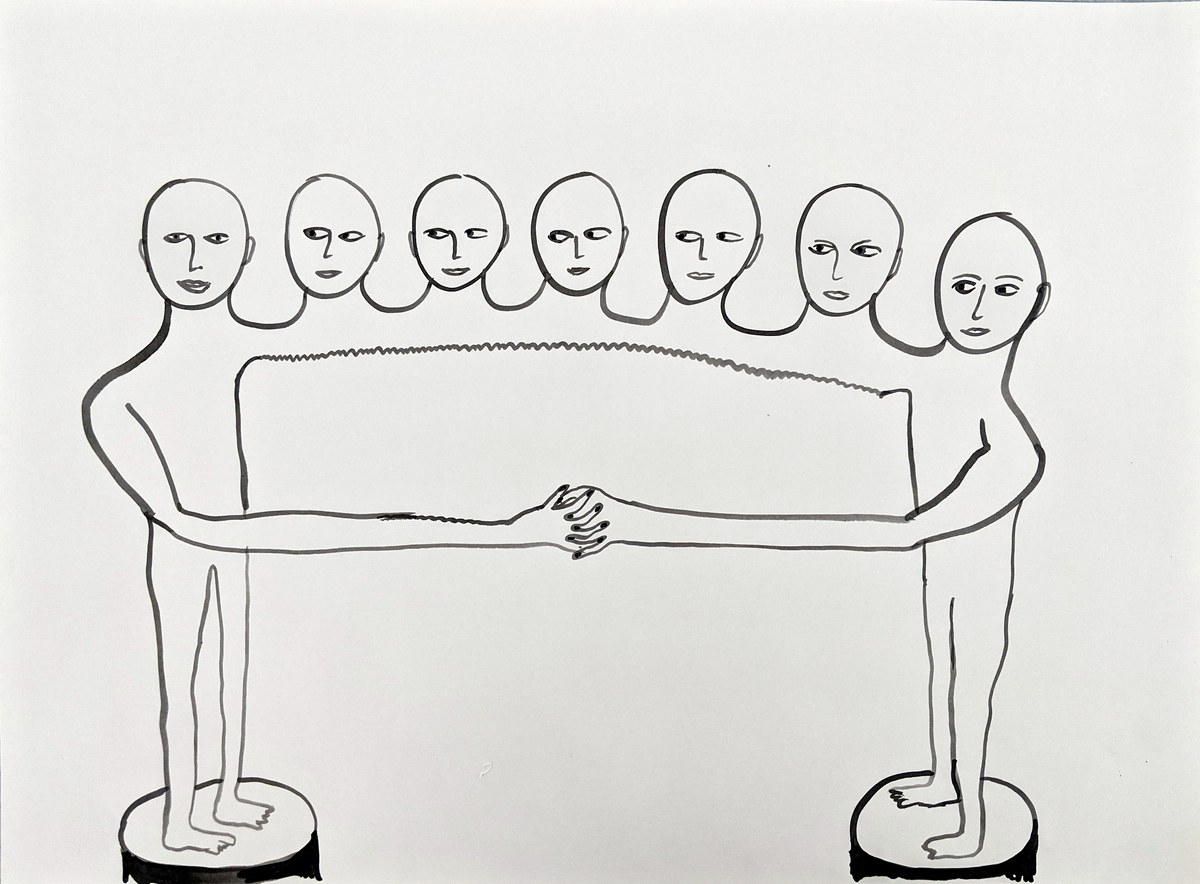 exhibition with paintings on canvas, drawings on paper and acryl collages on paper.